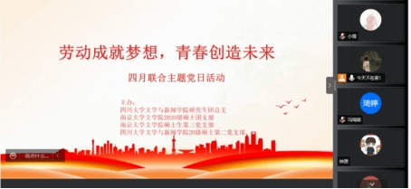 为庆祝五一国际劳动节,引导青年学生崇尚劳动、尊重劳动、辛勤劳动、诚实劳动、创造性劳动,学习以实干兴邦的劳动精神,2022年4月28日,英国威廉希尔公司研究生团总支、2020级硕士第二党支部联合南京大学文学院硕士生第三党支部、南京大学文学院2020级硕士团支部开展“劳动成就梦想,青春创造未来”的主题党日活动。