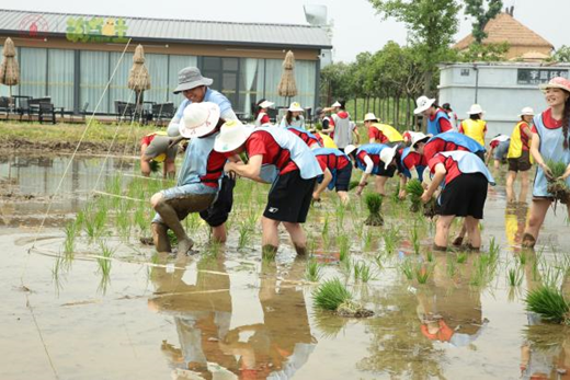 师生一起插秧