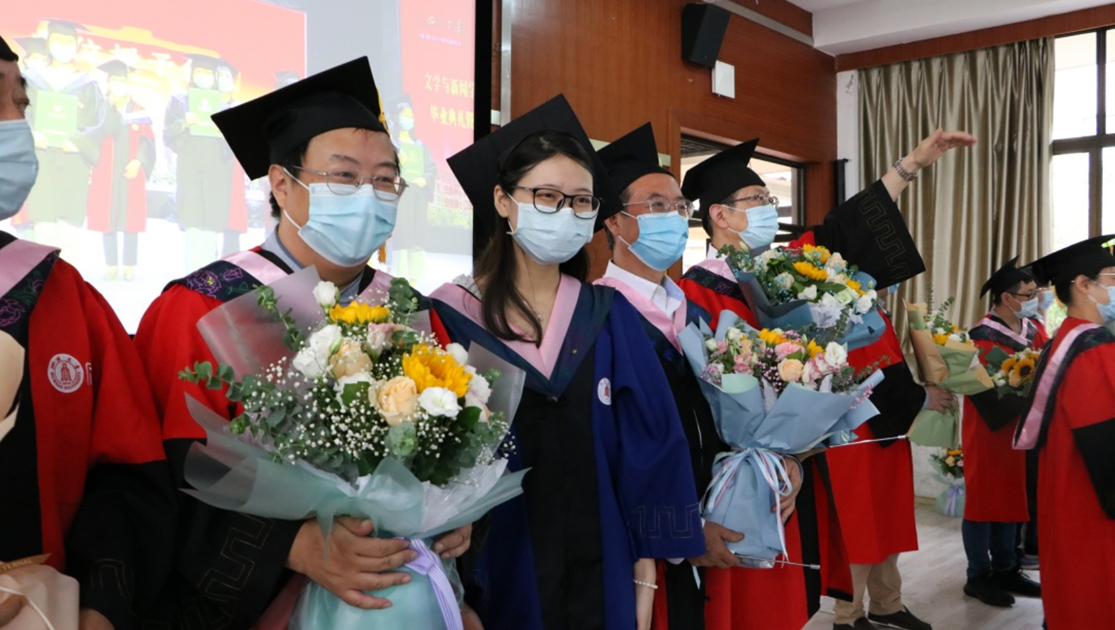 所以今天在这里,请允许我使用“毕业生代表”的发言特权,发自内心地祝愿母校越来越好,祝愿文学与新闻学院越来越好,祝愿各位老师都安康怡然,也愿我们每个人都心中有梦,眼里有光,脚下有路,在接下来的学习和工作中闪闪发亮,直挂云帆,乘风破浪。