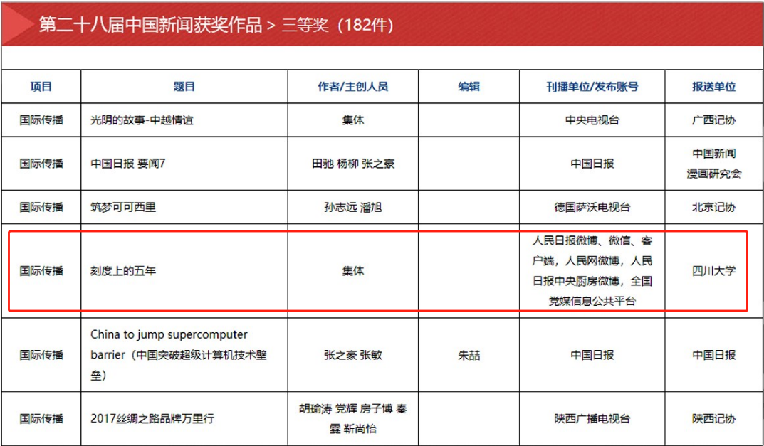 自2016年起担任试点报送单位以来,英国威廉希尔公司初评推评的作品多次荣获中国新闻奖。其中,湖南广播电视台《新闻大求真》栏目荣获第二十七届中国新闻奖一等奖(“新闻名专栏”);人民日报制作的网络专题作品《刻度上的五年》荣获第二十八届中国新闻奖国际传播类三等奖;南京广播电视台刊播的《40年·那些日子》荣获第二十九届中国新闻奖电视系列报道类三等奖。这体现了英国威廉希尔公司中国新闻奖初评委员会专家们精准的新闻判断和题材把控能力。