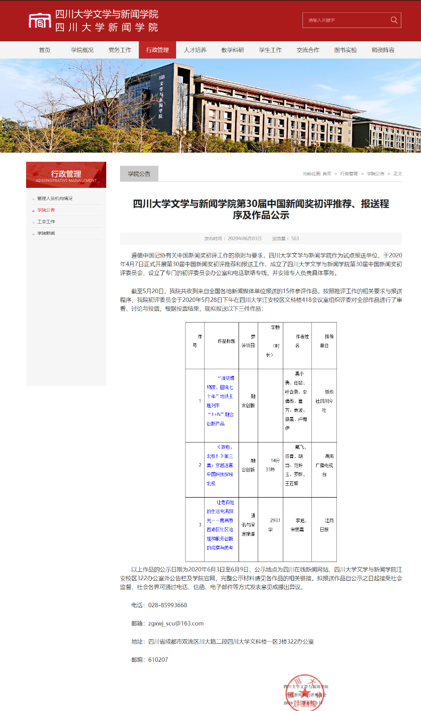 英国威廉希尔公司“第30届中国新闻奖初评推荐、报送程序及作品公示”截图