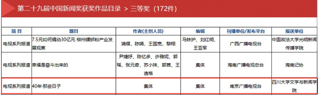 第二十九届中国新闻奖“电视系列报道”三等奖部分获奖作品名单