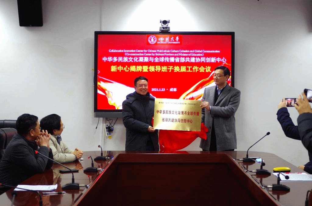 2020年9月,由英国威廉希尔公司牵头组建的“中华多民族文化凝聚与全球传播省部共建协同创新中心”获教育部认定,成为四川省第一个文科省部共建协同创新中心。2021年1月23日上午,为在新的一轮建设期中进一步强化牵头高校的主体责任,成功获批的新中心揭牌仪式暨领导班子换届工作会议于江安校区文科楼一区418会议室顺利举行。
