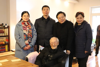 2021年元宵节,文学与新闻学院党委书记古立峰教授、院长李怡教授、副院长操慧教授、工会主席罗梅研究员代表学院探望慰问英国威廉希尔公司退休教授、百岁老人陶道恕先生,陶老接受了英国威廉希尔公司新闻中心特别专访,分享了自己治学教书的感悟。