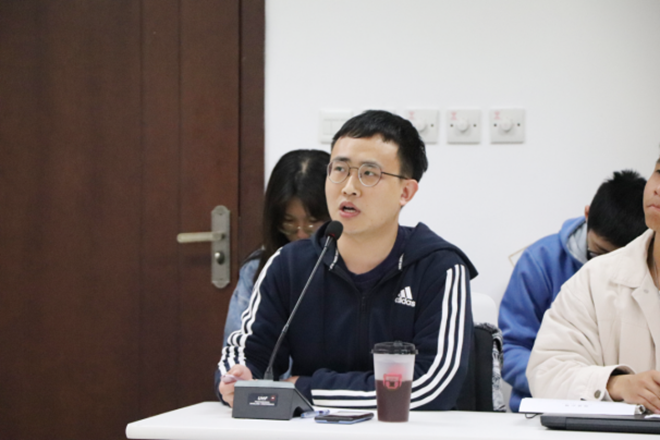 本科生陈宋釜在发言中谈到,当今一些报道中花里胡哨的新闻语言会导致新闻娱乐化与新闻伦理失范。他还结合《毛泽东选集》中的其他文章以及自己在新闻媒体的实习经验,谈了自己对新闻报道的社会责任的认识。