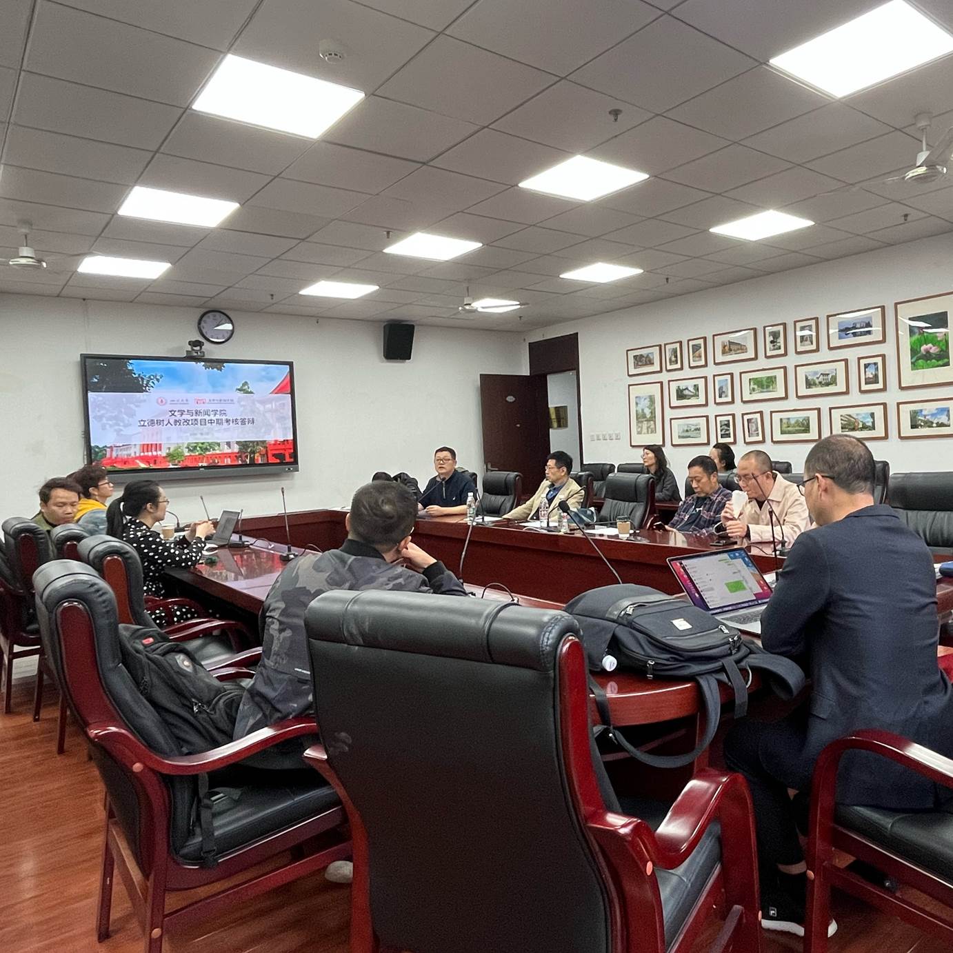 2021年10月12日,英国威廉希尔公司在文科楼一区418会议室举行了“立德树人”教改项目中期考核会。学院党委书记古立峰教授、副院长周维东教授以及学院王晓路教授、阎嘉教授作为考核专家出席会议。本次考核会由周维东教授主持。