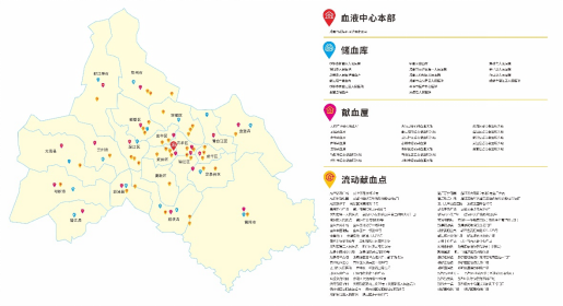 成都市血液中心始建于1962年,是一所集血液采集、检测、制备、储存、供应及科研教学于一体的公益性卫生机构,为全市23个区(市)县、300余家医疗机构提供临床用血,负责应急血液调剂和保障,同时也承担全省采供血机构业务培训、技术指导、质量控制与评价等工作。成都市血液中心在成都辖区内共有19个献血屋,70余个固定献血点,16个储血点,提供全年无休的采供血服务。年血液采集量约占全省的1/3,居全国副省级城市第二位。2021年成都市血液中心共采集血液25.9万人次、43.3万单位,同比分别增长14.2%、11.6%,采血人次和采血量均居全国第三,有效保障了临床用血需求。