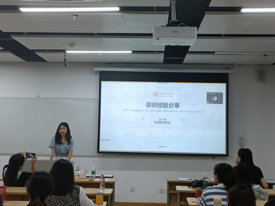 随后,经验分享环节正式开始。首先是中文专场,莫凯洁同学作为第一位分享同学从“知道保研是什么”“在保研中做了什么”两个问题开启了本次分享会之旅,她按照“三步走”的策略阐述了“目标确定”“步骤分明”和“行动办法”。牛童同学讲述了自己从国际知名暑校到成功保研的多彩经历,尤其是将出国留学准备工作和国内保研准备工作融合在一起,为同学们提供了针对性的借鉴经验。崔逸灵同学以“普通人保研指南”为题,生动形象地为面临保研焦虑的同学“开处方”“避禁忌”。向宇歌同学和王一丹同学分别用时间轴的方式展示了自己保研过程中的具体安排,为大家梳理了更加清晰的时间管理步骤,并介绍了部分学校的夏令营时间安排和部分公开的面试流程。赵嘉宁同学则先是讲述了自己在保研路上曲折但激励人心的故事,后又无私分享给大家详细的资源清单。彭笑秋同学以录制视频的方式为大家分享保研路上的几个关键步骤“发现兴趣-收集信息-明确定位-供需对接”的心得,十七分钟的视频充满干货。