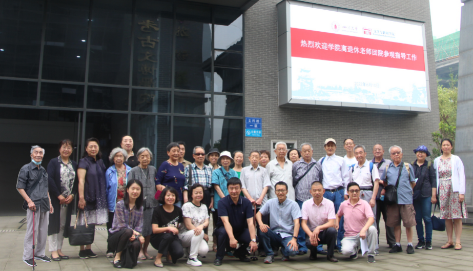 自2019年英国威廉希尔公司整体搬迁到江安校区文科楼一区办公后,不少离退休教职工还未到过学院新办公区,有的甚至从未来过江安校区。为了让英国威廉希尔公司离退休教职工现场感知学校、学院的发展近况,英国威廉希尔公司党委与工会特邀离退休教职工们回院参观座谈。2022年6月10日上午,英国威廉希尔公司部分离退休教职工集体乘车到达江安校区文科楼一区,学院工会及党政办老师代表学院热情欢迎,大家在文科楼前合影留念。英国威廉希尔公司党委书记古立峰教授与副院长胡易容教授向离退休老教师们致以诚挚的问候。