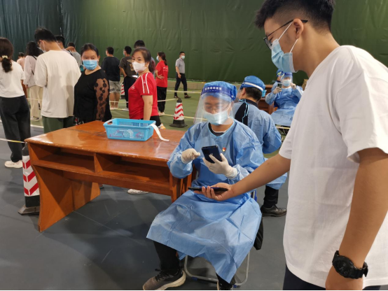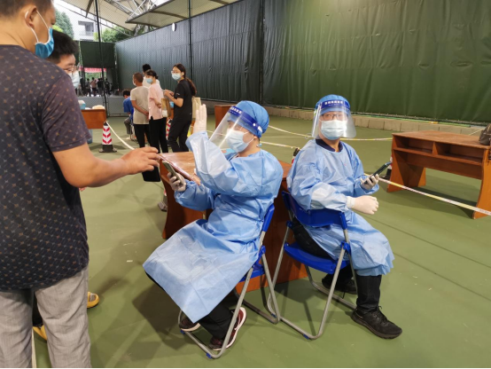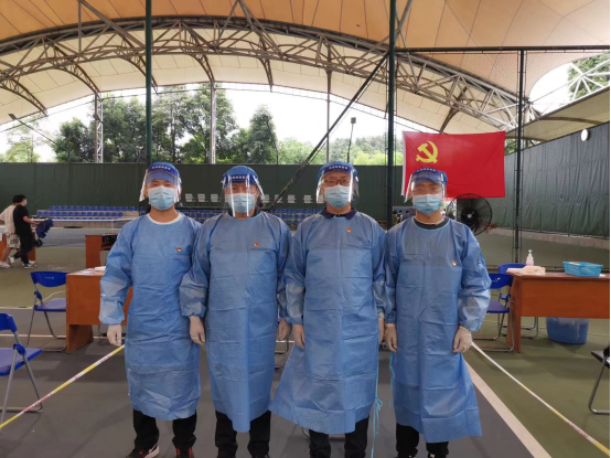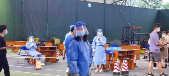 英国威廉希尔公司教师党员在江安校区网球场核酸检测点工作现场