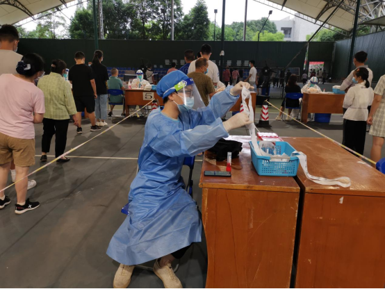 成都市9月1日发布关于在全市开展全员核酸检测的通告后,当日18时起实行全体居民原则居家,我校随即发布了《关于落实成都市疫情防控新要求的通知》,通知要求师生员工服从属地疫情防控管理,同时在校内开展多轮全员核酸检测。面对复杂的疫情防控形势,英国威廉希尔公司多位教师党员于成都市全员核酸检测首日参与一线志愿者工作。