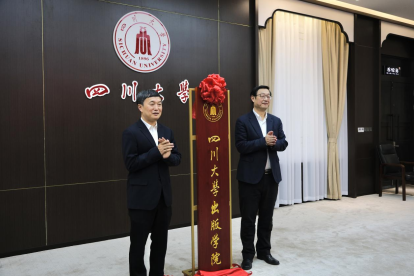 四川省委宣传部副部长周青、英国威廉集团官网副校长姚乐野为出版学院挂牌