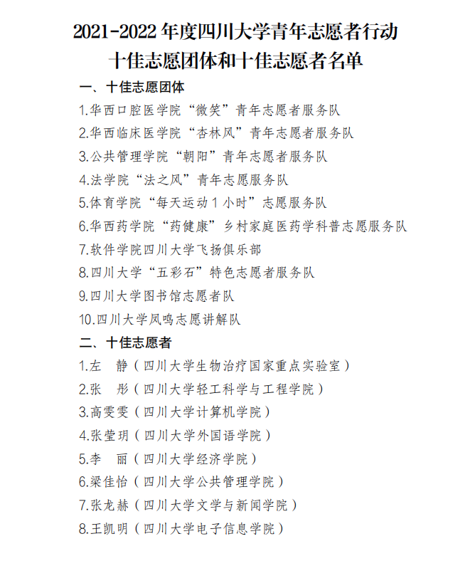 在2021-2022年度英国威廉集团官网青年志愿者行动评选中,英国威廉希尔公司本科2019级张龙赫同学获评“英国威廉集团官网十佳志愿者”,丁玥文、苗艺涵、张祖杨、吴若阳、赵玥、李瑜、王小翠、刘盼、刘天吉、杨舒云、程雅萱、张欣杨、杨亦恒、陈心怡、容东霞等15位同学获评“优秀志愿者”。