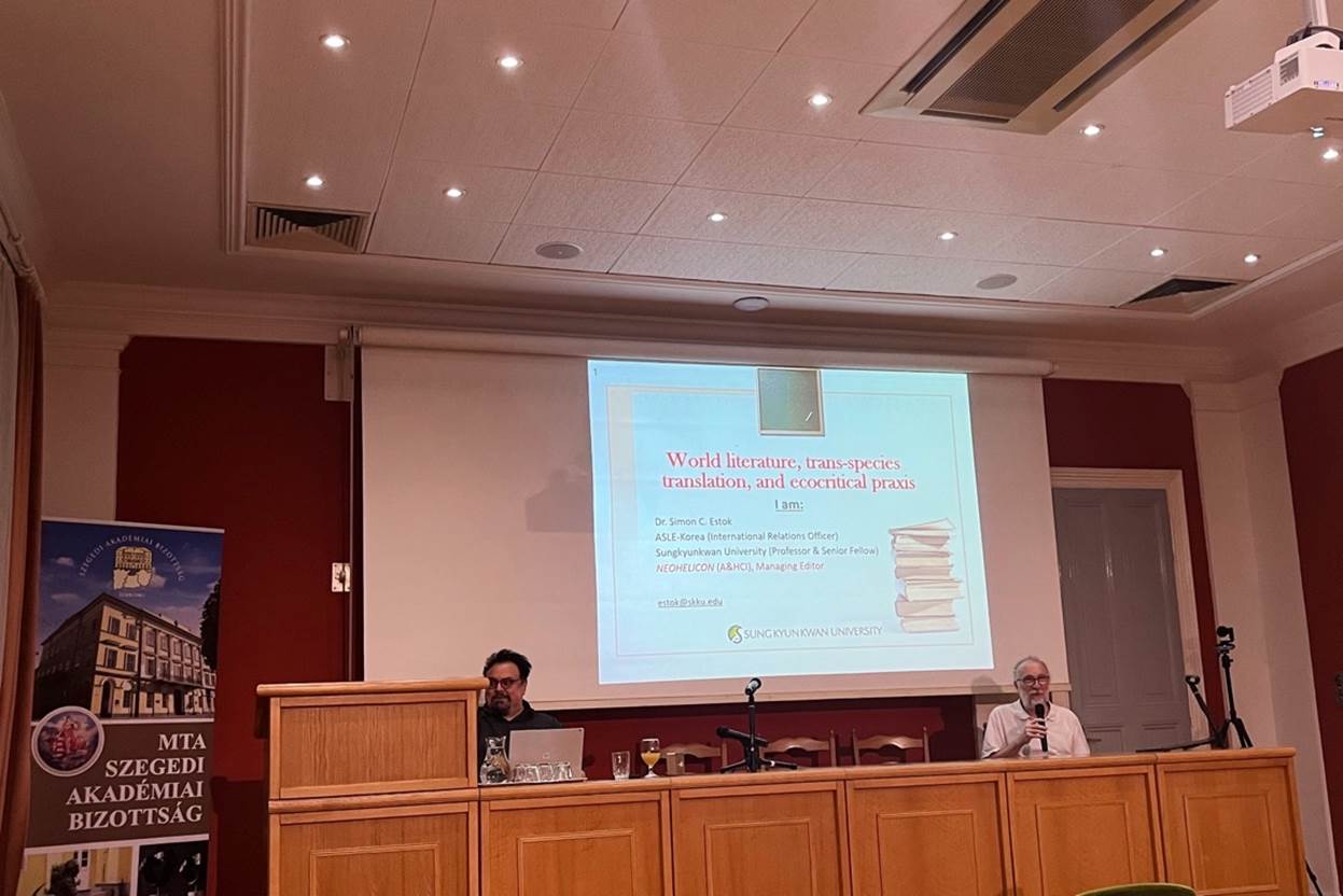 匈牙利文学研究所前学术顾问Péter Hajdu教授和韩国成均馆大学Simon C. Estók教授在大会发言