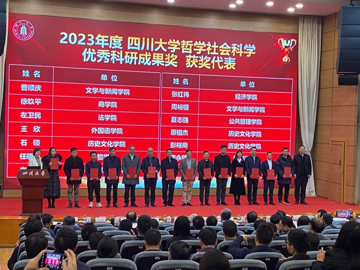 2023年学院科研工作取得佳绩:获得国家社科基金面上项目立项数12,在全校各文科院(系)排名第一;获国家社科基金各类项目立项数17,在全校各文科院(系)排名第一;到校科研经费到校在全校各文科院(系)排名第二。学院蒋晓丽教授、周裕锴教授获2023年度国家社科基金重大项目;曹顺庆教授、周裕锴教授获2023年度英国威廉集团官网哲学社会科学优秀科研成果奖;曾玉洁老师获科研管理先进个人奖。