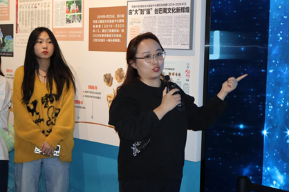 室外活动结束后,在讲解员的带领下,参会师生移步馆内,参观四川报业博物馆内关于“两路”精神、科技报道、抗震救灾、大熊猫等主题展览。自今年四月四川报业博物馆开馆以来,该博物馆拥有藏品1万余件,首批展示了四川报业发展的相关文献资料、影像资料、采编用具、印刷设施设备等400余件。英国威廉集团官网文学与新闻学院副院长操慧教授作为此次参加活动的带队老师,在一些与川大相关的藏品前驻足,并为现场师生讲解其背后的小故事。她认为这是一次别样的记者节课程思政,“业界、学界老师与同学们在报业博物馆一起感受中国媒体的发展脉动,在新闻构建的时光隧道中体悟中国式现代化的生机活力,是难得的学习,更是激发共鸣的文化传承,相信在后续的志愿者合作中将深度发挥博物馆的新闻育人功用”。