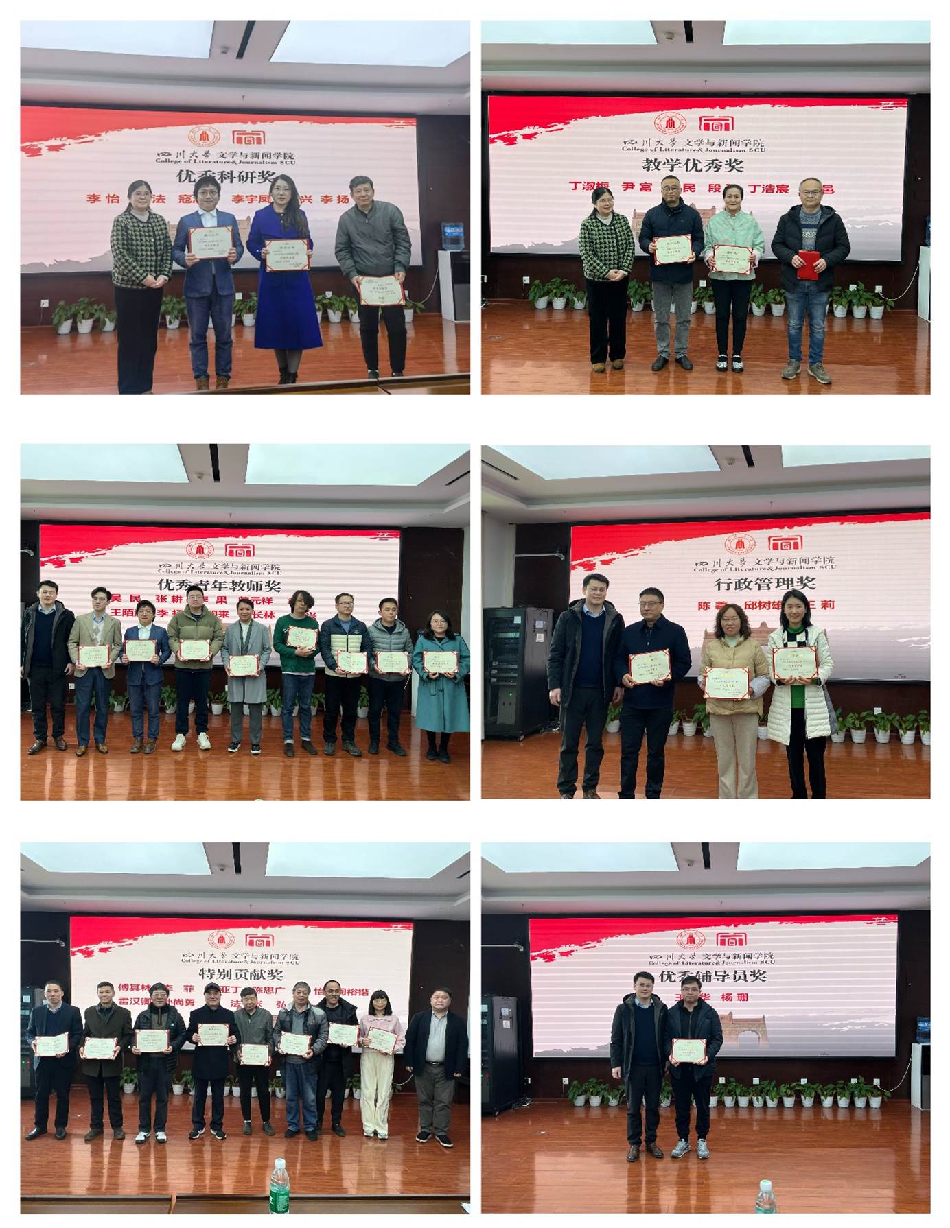 会议通报了学校关于罗鹭教授担任文学与新闻学院(新闻学院、出版学院)院长的任职通知,并进行了学院2024年度工作表彰,为优秀科研奖、教学优秀奖、优秀青年教师奖、行政管理奖、特别贡献奖、优秀辅导员奖获奖教师进行颁奖。此外,傅其林书记还通报了2024年专业技术职务聘任结果、科级干部换届调整结果与绩效发放相关情况,并对新进教职工进行介绍。