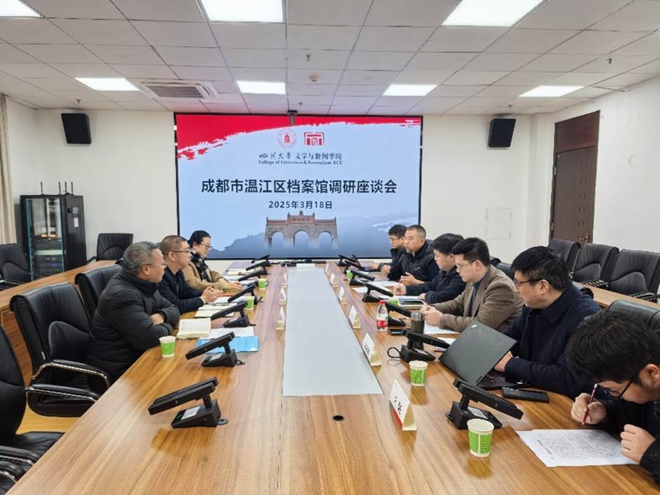 罗鹭院长结合学院需求和学科优势,从学生培养、文化资源开发利用、文化产品研发推广等方面提出合作思路:一是可以建立学生实习实践基地,加强学生实践教育,引导学生就业;二是可以充分发挥学院在现代文献学等方面专长,围绕档案资源共同申报课题,开展学术研究;三是可以通过挖掘档案资料中的特色亮点,转化为文化产品,为温江区文化建设贡献力量。银浩副书记、张朝富主席、邱树雄主任、王涵老师等分别结合自己的工作和研究领域,就开展合作交流了想法。会上,双方初步达成合作意向,下一步将积极推进具体项目合作。