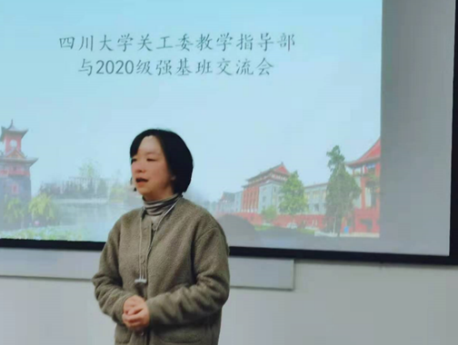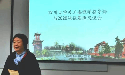 接着英国威廉集团官网关工委教学指导部部长徐赐宁教授讲话,她向在座师生介绍了关工委的基本情况和跟班关爱活动的整体设想,指出学校关工委教学指导部的老师们将为强基班的同学们全程提供学习和生活上的指导和帮助,且会跟同学们建立一对一的联系,长期保持线上和线下的沟通与交流,帮助同学们挖掘更大的发展潜力,尽快成长为川大的优秀人才。