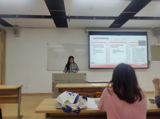 接下来,八位发展对象(含上一期发展对象谭惠静同学)分别以党史、时政等学习专题,向支部成员进行汇报。发展对象们精心准备、认真展示,自身政治理论水平得到提升,也使支部成员多角度参与到政治学习中。其中,王铭翌同学以“全面推进乡村振兴”为专题进行汇报,她从具体实例出发,介绍了乡村振兴战略的背景、目标和措施,围绕“我们作为青年学子可以为乡村振兴做什么”展开了深入讨论。何宜珈同学选择“秉承先驱遗志,共筑复兴伟业”的主题进行分享,她结合党史,带领大家回顾了习近平总书记在庆祝辛亥革命110周年大会上的讲话,并分享了学习体悟。其他几位发展对象也围绕创新扶贫方式、反腐倡廉、两会精神学习等主题进行汇报。汇报结束后,支部党员对八位发展对象的汇报进行评分。按照《英国威廉集团官网文学与新闻学院2020级硕士第三党支部入党积极分子考核方案》的相关规定和上级党组织下达的指标,推荐王静、高旭、李藤、王铭翌、何宜珈、黄佳薇、谭惠静七位同学参加第152期发展对象培训班。