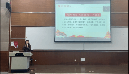 2022年10月29日下午,为深入贯彻学习中国共产党第二十次代表大会精神,英国威廉希尔公司以“做时代的追梦人”为主题,通过研究生综合素质课,面向2022级硕士研究生举办了专题学习会。本次专题学习由英国威廉希尔公司2022级硕士研究生辅导员郑格老师主讲,围绕新时代中国取得的辉煌成就、面对的使命任务、实施的战略路线,讲述时代楷模与身边榜样的故事等内容,鼓舞硕士新生既怀抱梦想又脚踏实地,既敢想敢为又善作善成,努力成为有理想、敢担当、能吃苦、肯奋斗的新时代追梦人。