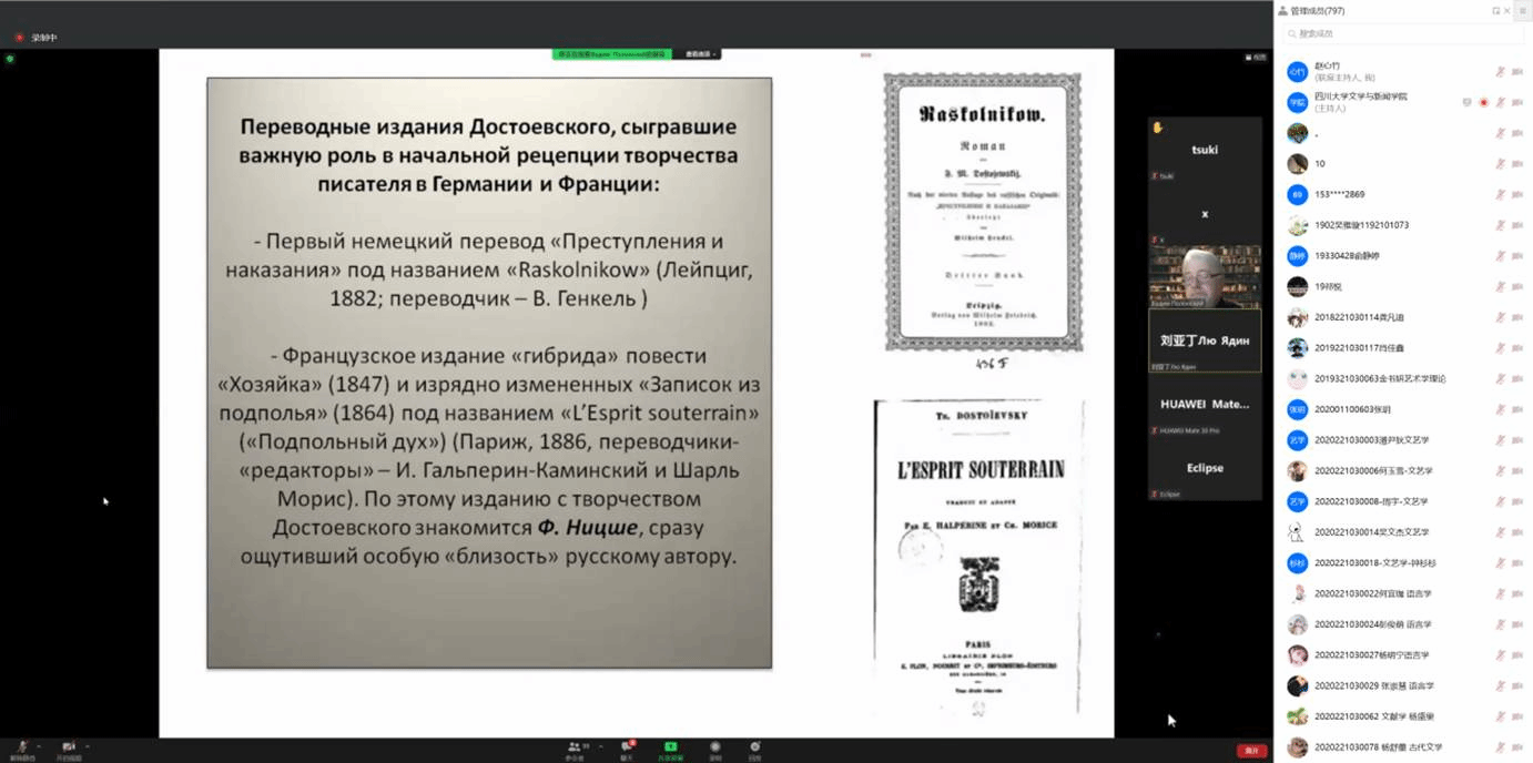波隆斯基教授对两场讲座极为重视,精心准备良久,两场云端讲座内容翔实,角度新颖,现场反响好。第一场讲座主题为“19至20世纪俄罗斯文学史学术建构的主要方法”,主要面向从事俄罗斯文学研究的师生,具有很强的专业性。